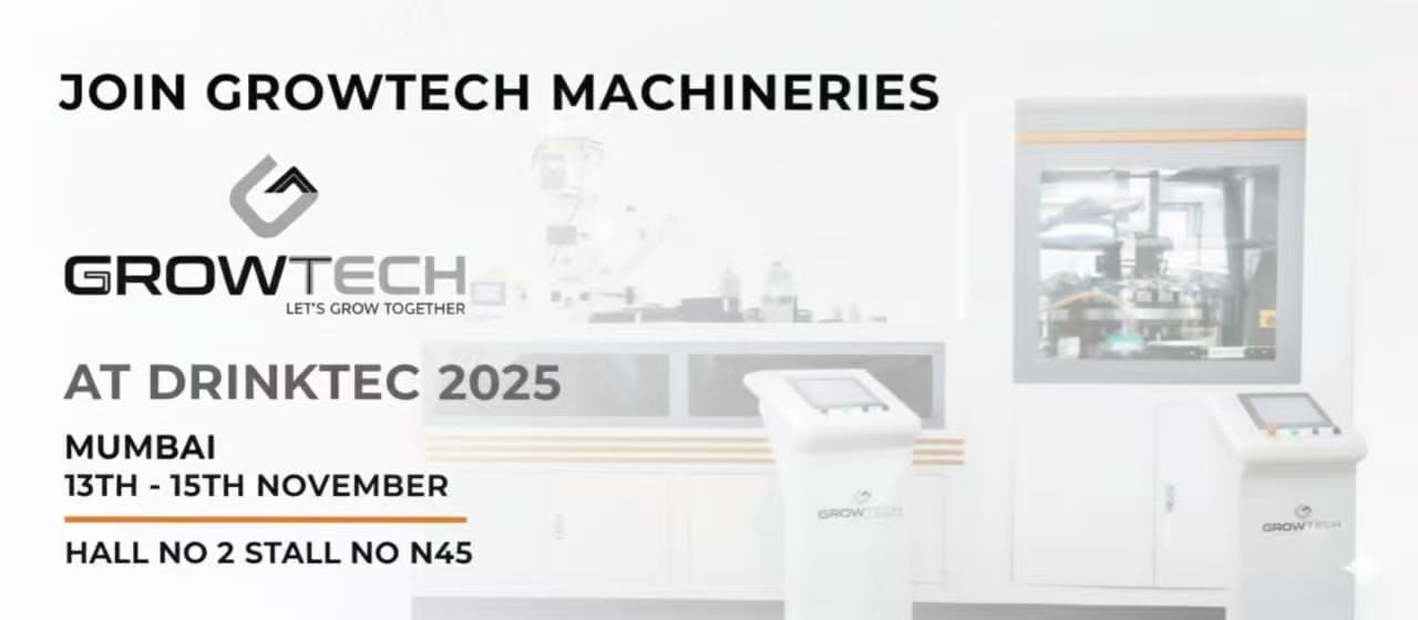 创振机械制造 再次自豪地登上国际舞台,携手值得信赖的合作伙伴参加11月13日至15日在孟买举行的Drinktec 2025。作为自动化封盖和包装解决方案领域的新兴创新者,Growtech 将展示其先进的封盖机,旨在为现代生产线提供精度、效率和可靠性。